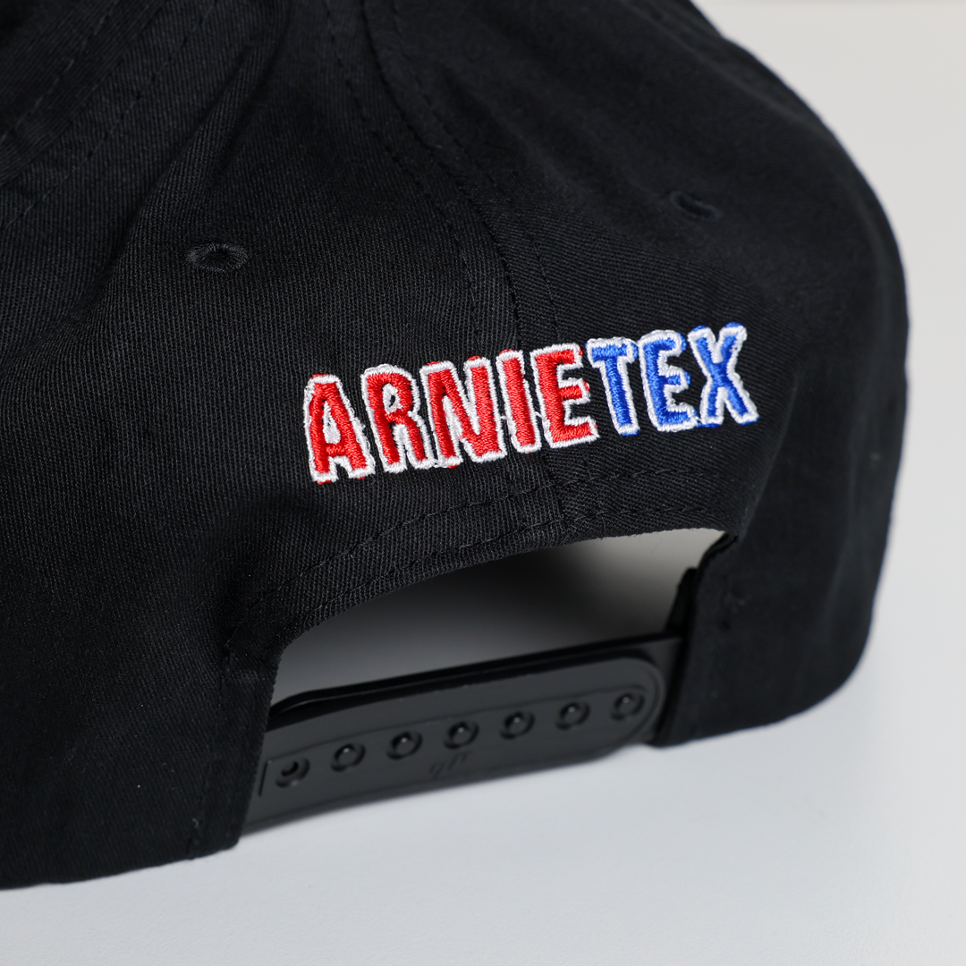 Black Flippity Flip cap with ArnieTex logo. Yupoong "The Classics" Snapback.